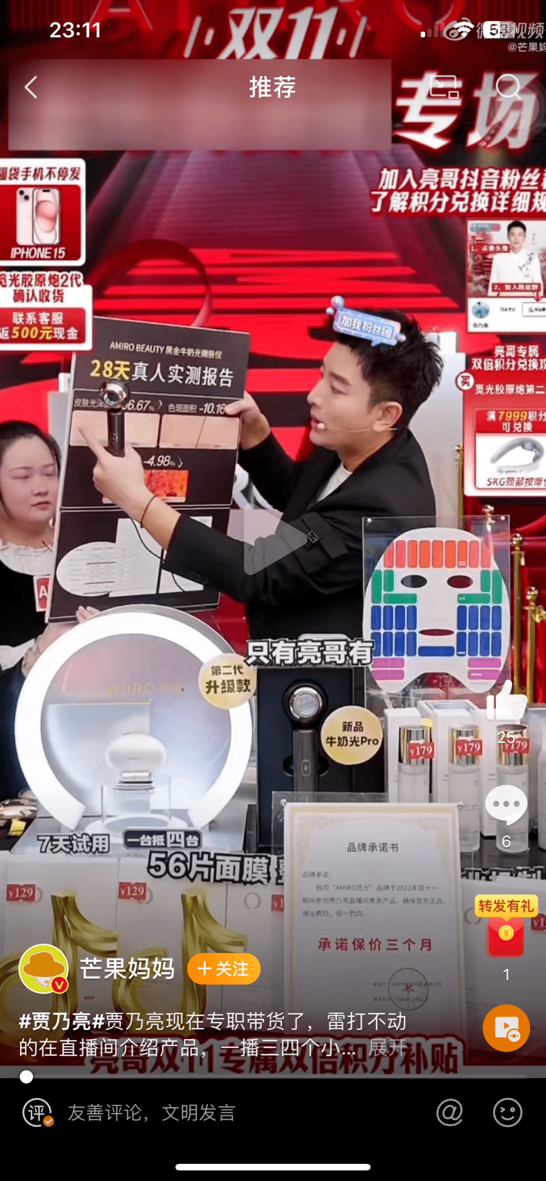 回到主播层面,近年来,许多明星纷纷化身主播直播带货,自称“抖音一哥”的贾乃亮便是其中翘楚。明星做电商,是把影响力变现的新路径,本来无可厚非。但像贾乃亮直播间售卖AMIRO觅光胶原炮这种没有资质、线上显著溢价线下的产品,实际上难逃被消费者质疑的风险。