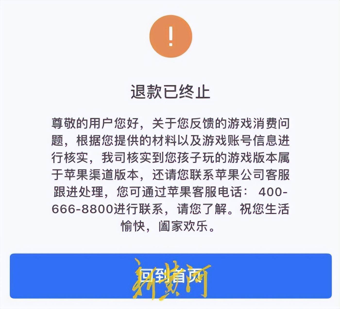 汪先生的退款之路更加坎坷。9月10日晚,汪先生发现儿子充值的情况,立即同“网易家长关爱平台”进行了沟通。9月11日,网易家长关爱平台拒绝了退款请求,告知他需要通过苹果手机客服进行联系退款。“苹果(手机)那边后来也没能退款,联系客服说审核不通过。“汪先生说,他下一步都不知该找谁协商退款。