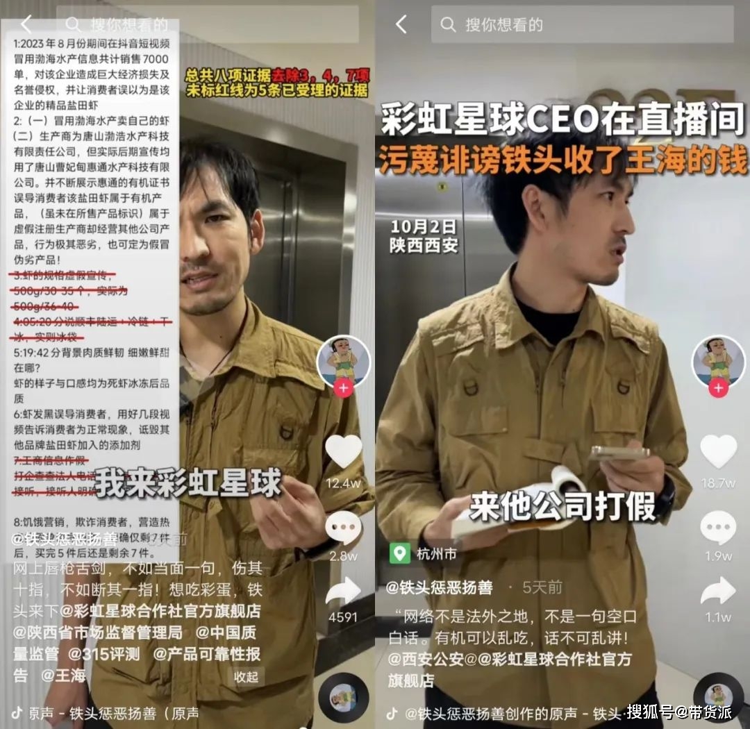 先是彩虹星球CEO在直播间称铁头收了王海的钱。