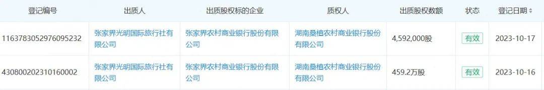 其中,张家界银洲建材有限公司(第四大股东)、张家界採芝堂大药房连锁有限责任公司(第六大股东)、张家界光明国际旅行社有限公司(第十一大股东)对外质押股份占其持有的公司股份比例分别为 100%、72.22%、97.56%,均超过其自身持股比例的 70%以上。