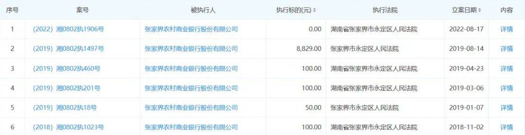 此外,张家界农商行还存在行政处罚、被列为被执行人等情况。
