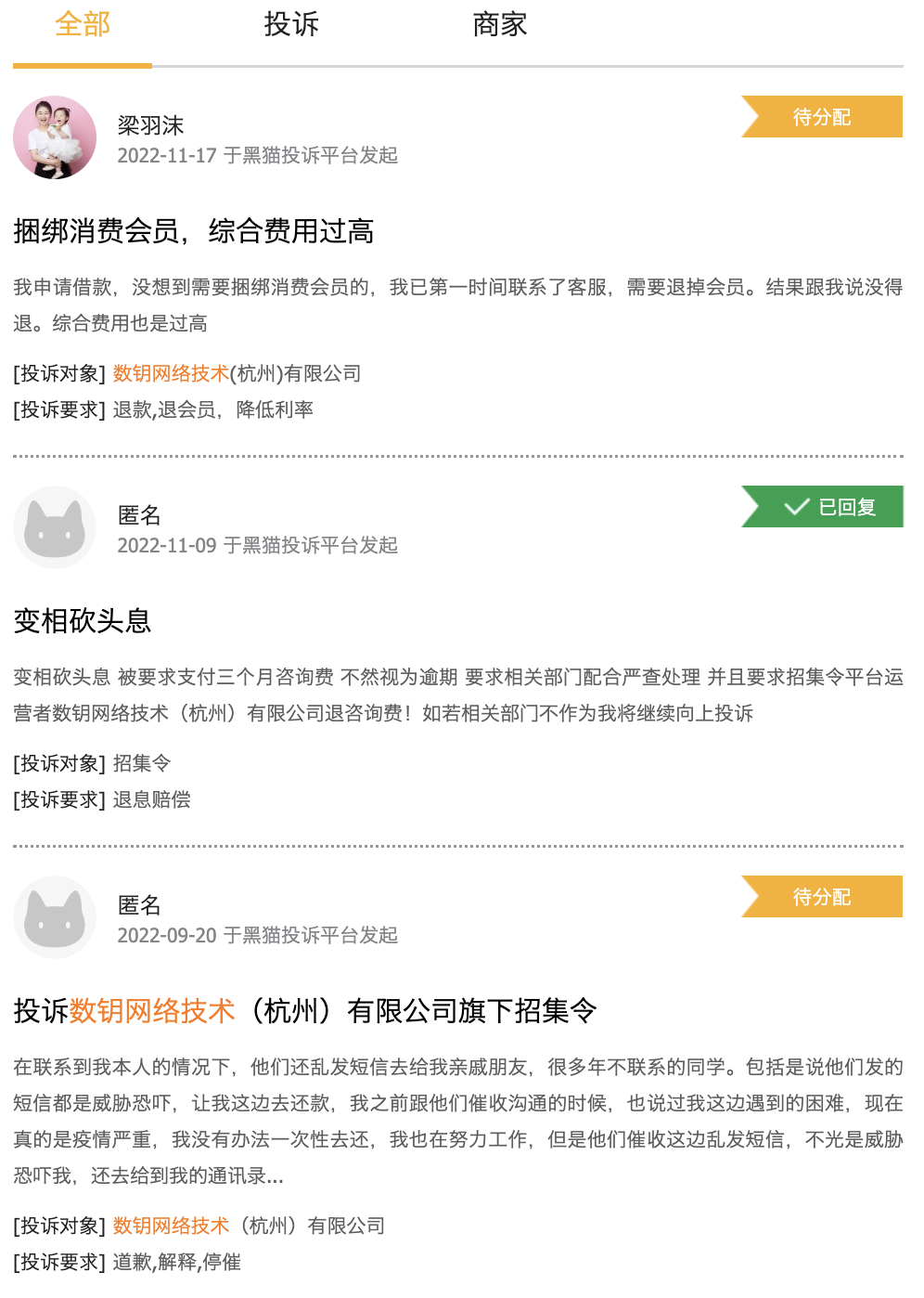 数钥科技遭用户投诉:“招集令”被指息费高 助贷平台被处罚