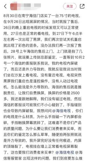 海信深陷售后纠纷 消费者不满电视质保期内要高额自费维修