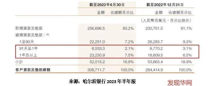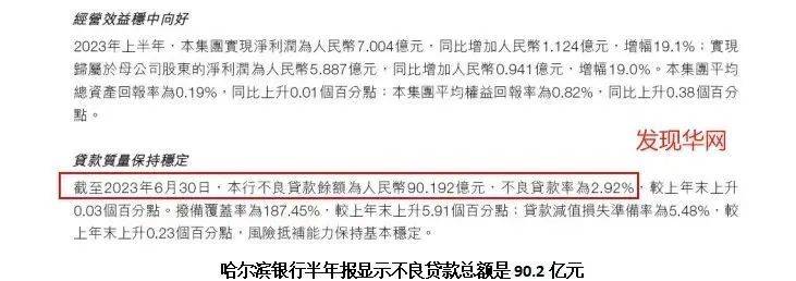 比如截至6月末,哈尔滨银行逾期一年以上的贷款是232亿元,比年初增加近50亿元。对比90亿元的不良贷款总额,也就是说逾期一年以上的贷款并没有完全纳入不良贷款。