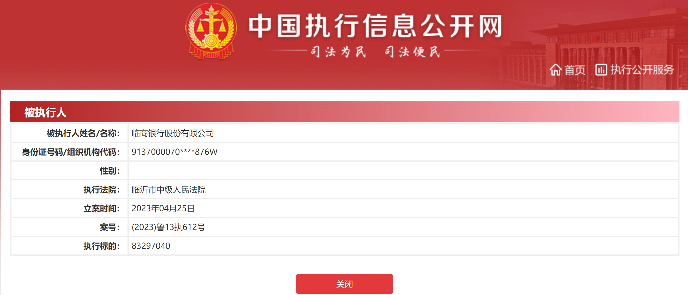 日前,中国执行信息公开网公布的信息显示,临商银行股份有限公司(以下简称“临商银行”)于2023年4月25日成为被执行人,执行标的约8329.70万元,执行法院为临沂市中级人民法院。