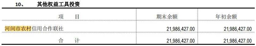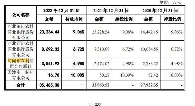 而津同仁堂(NEEQ : 834915)2022年报披露,河间市农村信用合作联社成立于2006年12月29日,截至2022年末,河间联社资产总额1963082.78万元,净资产93276.52万元,实现营业收入43143.44万元,实现净利润16015.21万元。2022年,津同仁堂投资河间联社确认股利收入218.21万元,累计利得843.70万元。