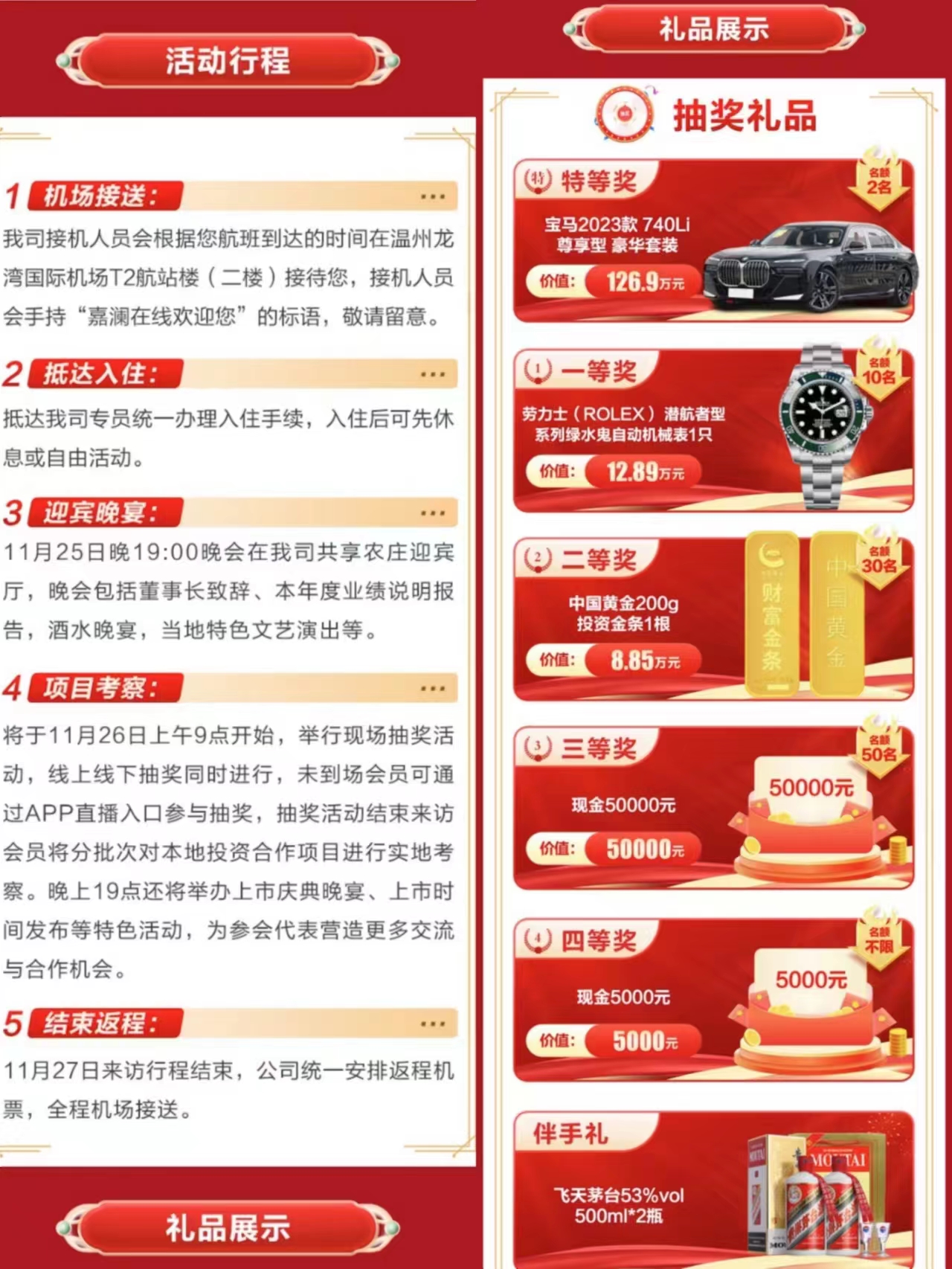 当然,这类平台为了让投资者放心,往往会虚构或者冒充一个公司,利用该公司的名义开设线下研讨会,为会员们安排酒店、晚宴,甚至车接车送实地考察项目。然而这些不过就是“障眼法”,设立各种抽奖环节让投资者们相信公司实力强大,相信这些“虚构的”项目是真实存在的,才能确保有源源不断的投资款进账。