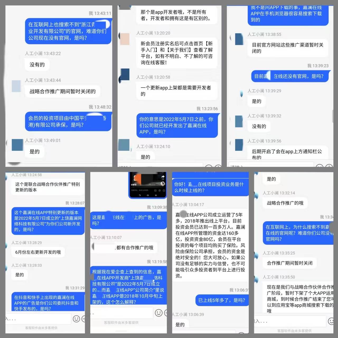但是,郝女士突然发现“嘉澜在线”app无法在软件商城上下载,网上也搜索不到该平台官网,且app的研发公司为“上饶嘉某网络科技有限公司”,该公司2022年才刚刚成立,与“嘉澜在线”宣称的该平台在2018年就已经上线的时间并不符合。