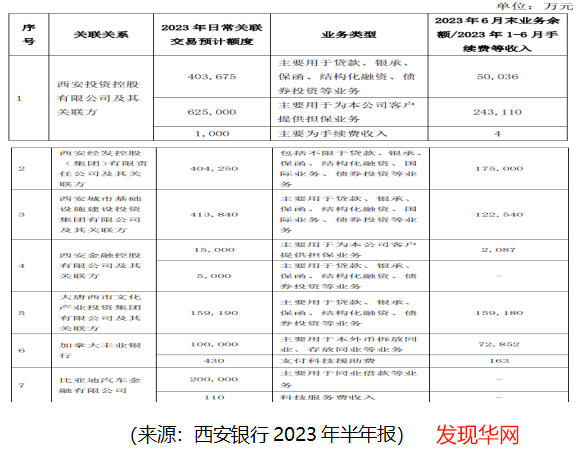 根据其2023年半年报资料显示,西安银行向大唐西市及其关联公司用于贷款、银承、保函、结构化融资、债券投资等业务关联交易约15.9亿元。