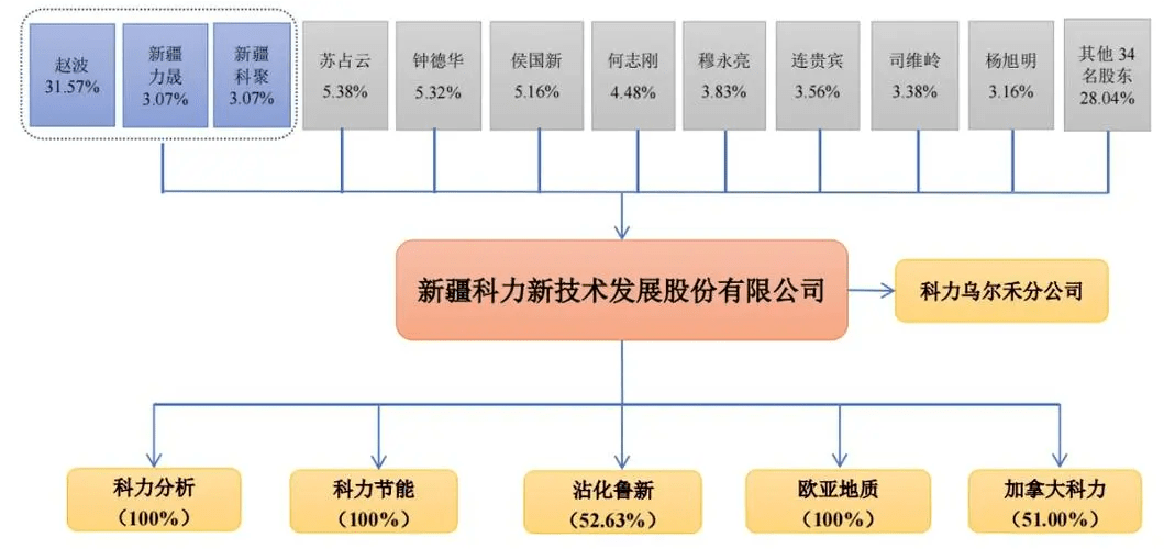 从股权结构来说,科力有限设立时,注册资本为300万元,由赵波及31名参与改制的员工以及一家外部投资者石大奥德持有股份,其中,赵波持股13.25%,石大奥德持股12%。