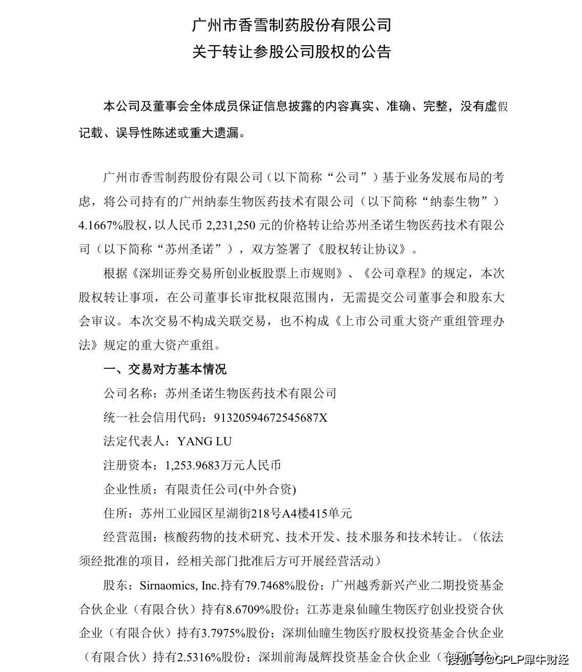 香雪制药股权转让后,会有什么变化?GPLP犀牛财经将会持续关注。