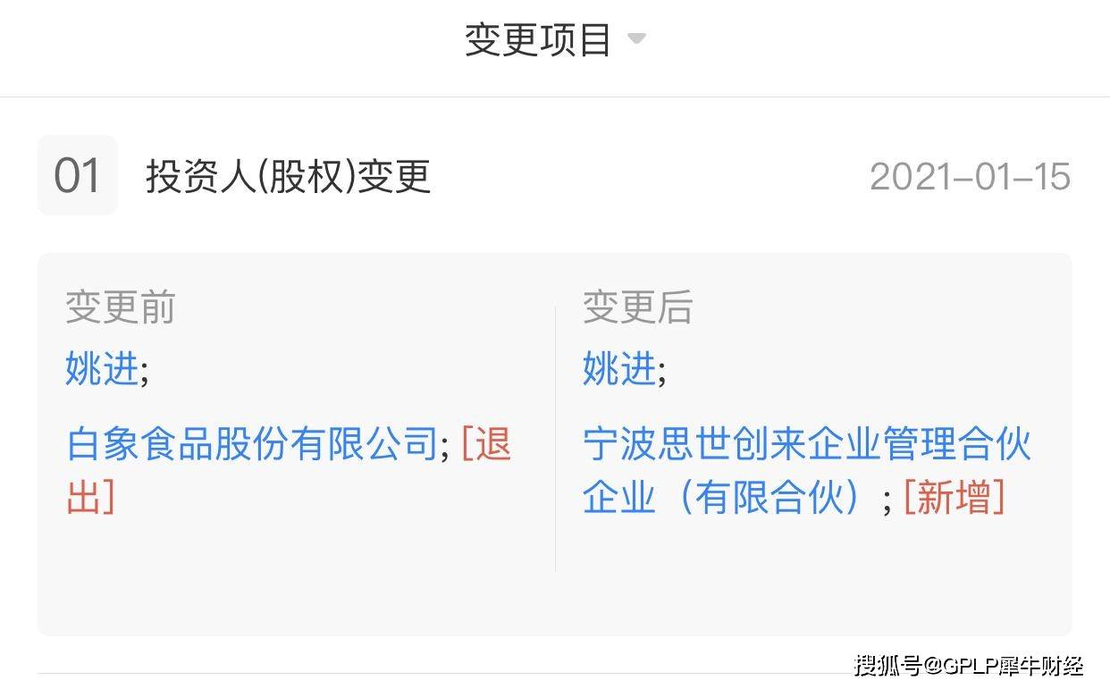 1月15日,白象食品退出一面食品,退出前持股15%,对于退出原因,白象食品未做出具体说明。