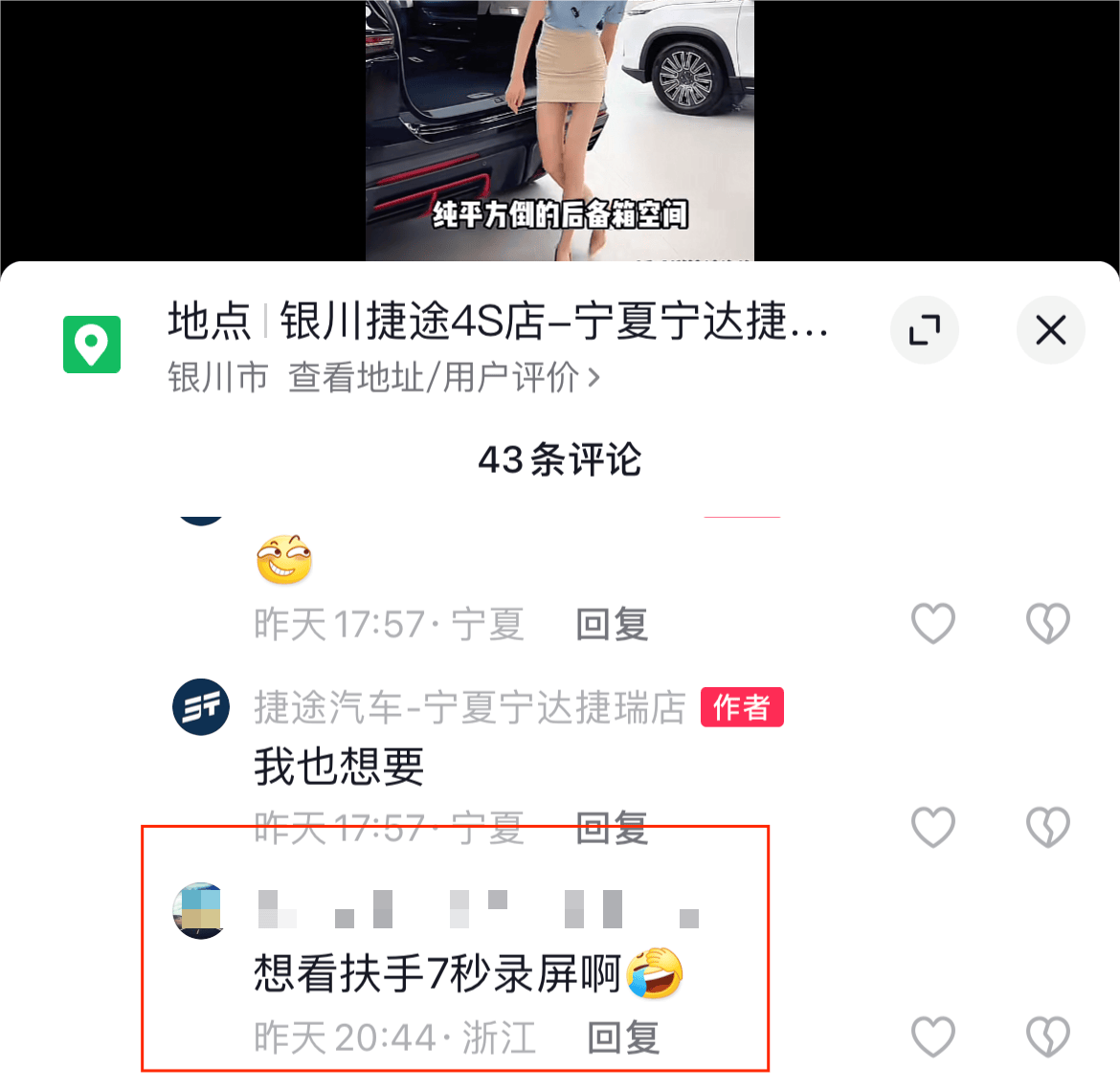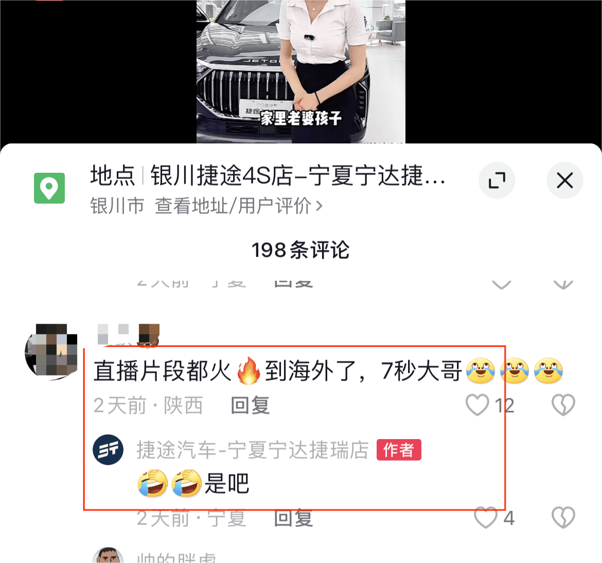直播间现大尺度低俗画面 涉事捷途门店抖音号仍在发新作品