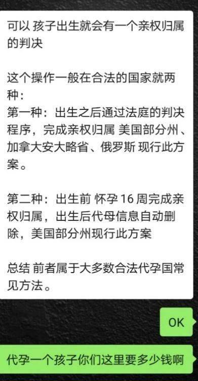 去年该公司上市时,为了了解蓝城兄弟代孕业务的实际操作流程,《投资者网》曾以代孕咨询者的身份咨询了蓝色宝贝的工作人员,在聊天中,这位工作人员明确表示:“国内代孕肯定是不合法的。”