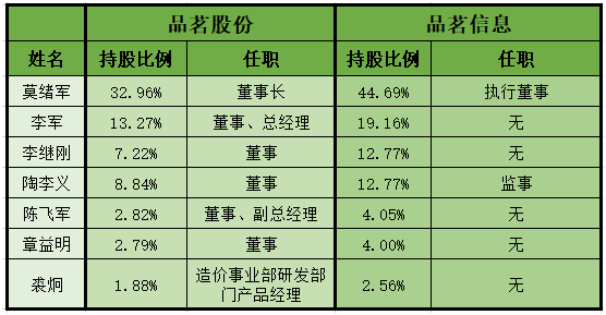在品茗信息公司中不仅存在实控人莫绪军的身影,品茗股份的其他股东也持有该企业股份。