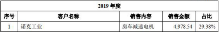有媒体认为,诺克工业向江南奕帆还采购了除房车减速电机外的其他减速电机?但从招股说明书“报告期内前五大客户的基本情况”所披露的信息来看,诺克工业的采购内容仅为房车减速电机,没有其他产品。