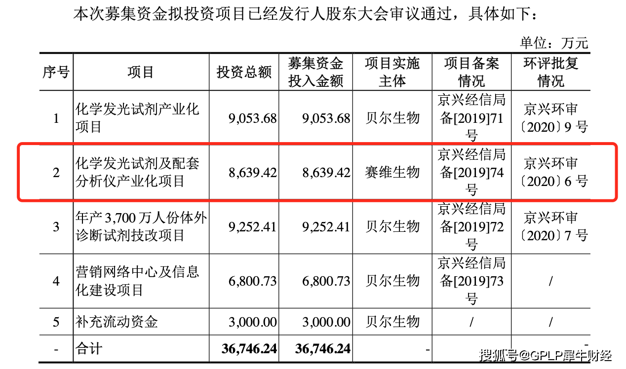 据悉,贝尔生物本次拟发行股票2500万股,募集资金约3.67亿元,其中,有8639.42万元用于化学发光试剂及配套分析仪产业化项目。但是,该项目的实施主体并非贝尔生物,而系其全资子公司赛维生物。