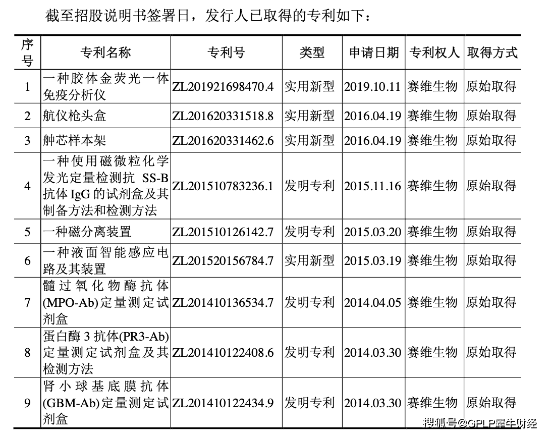 招股书显示,截至2016年11月,贝尔生物首次收购股权前,赛维生物已取得4项化学发光试剂盒发明专利、1项仪器相关发明专利、3项仪器相关实用新型专利及1项仪器相关软件著作权。