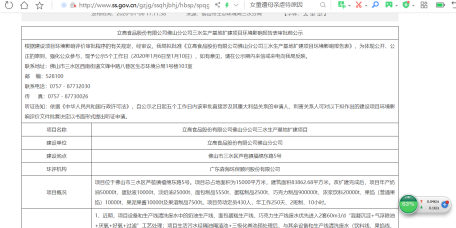 立高食品回复《电鳗财经》称,佛山市生态环境局三水分局发布的《立高食品股份有限公司佛山分公司三水生产基地扩建项目环境影响报告表审批前公示》中发布的信息为公司三水生产基地改扩建后的产能情况,是整个三水生产基地的规划,包括本项目的产能。“公司的三水生产基地扩建项目的产能不存在与《立高食品股份有限公司佛山分公司三水生产基地扩建项目环境影响报告表》出现差异的情况”。