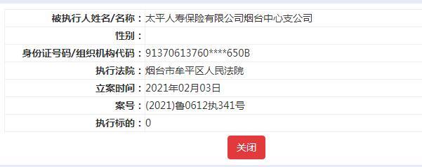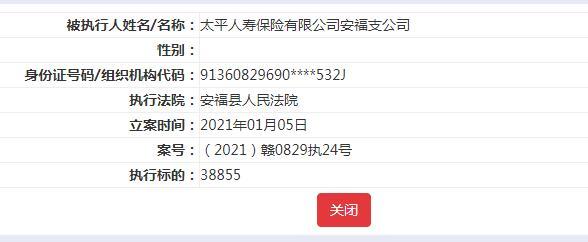 值得注意的是,此前在2021年1月5日及2021年2月3日,太平人寿保险有限公司两次被列为被执行人,两次被执行标的累计超3万元。