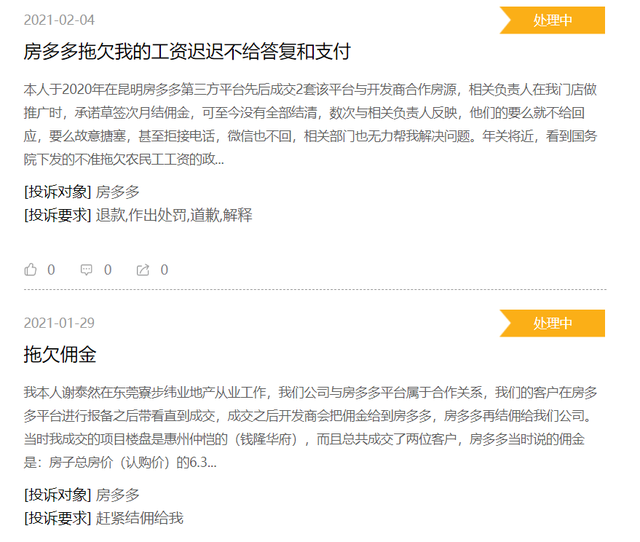 进入2021年,不仅拖欠佣金变得剧烈,房多多还开始拖欠员工工资。