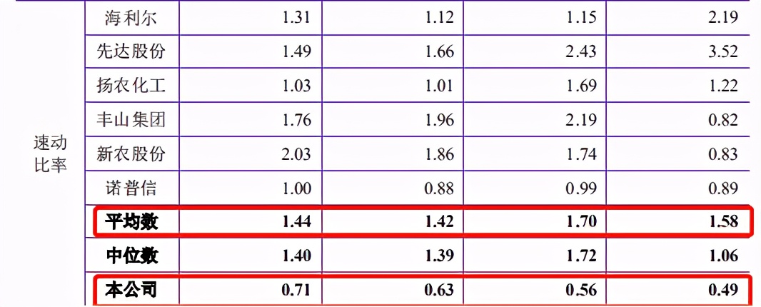 2017年-2020年上半年,中农联合的速动比率分别为0.49、0.56、0.63和0.71,而同期同行业可比公司的速动比率平均值分别为1.58、1.70、1.42和1.44。中农联合的速动比率一直低于行业平均水平,短期偿债能力可能较为薄弱。