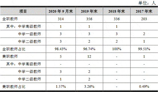 截至2020年9月30日专职教师占员工总数比例53.13%