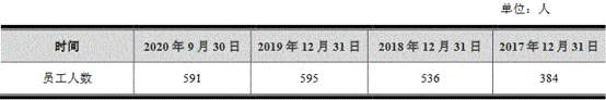 报告期内,老鹰教育员工人数分别为384人、536人、595人和591人。
