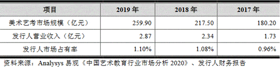 老鹰教育称,报告期内发行人的市场占有率较低,符合美术艺考培训市场相对分散的竞争格局。发行人在美术艺考培训行业积淀较深,取得了较好的培训成绩和口碑,表现出较强的市场竞争力。