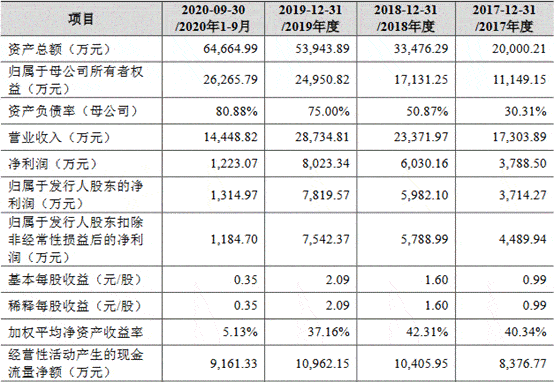 2017年、2018年、2019年和2020年1-9月,老鹰教育实现营业收入分别为1.73亿元、2.34亿元、2.87亿元和1.44亿元,实现净利润分别为3788.50万元、6030.16万元、8023.34万元和1223.07万元。