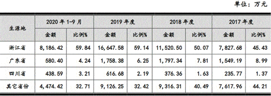 老鹰教育目前拥有7个校区,分布于浙江、广东、四川三省的五个地市(杭州市、金华市(义乌市)、温州市、成都市、深圳市),但老鹰教育市场区域和生源目前主要集中在浙江省。按生源地,老鹰教育来自于浙江省的主营收入分别为7827.68万元、1.15亿元、1.66亿元和8186.42万元,占比分别为45.43%、50.07%、59.14%和59.84%。