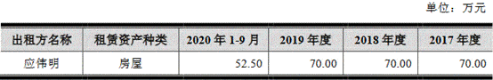 2017年度、2018年度、2019年度及2020年1-9月,该项关联租赁金额占当期营业成本的比重分别为0.89%、0.62%及、0.54%及0.61%,占当期同类型交易的比重分别为6.06%、5.08%、4.57%及4.58%。