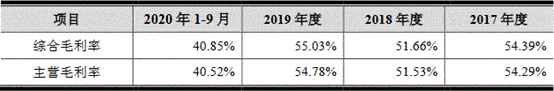 2020年前三季毛利率下滑