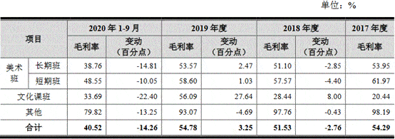 该公司解释称,2020年1-9月,受新冠疫情无法正常开展培训业务影响,以及每年3月-6月为艺考培训淡季的季节性因素影响,公司主营业务毛利率下降幅度较大。