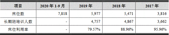 每年5月至12月份联考期间,老鹰教育在校学员数通常会达到高峰,2017年至2019年各年床位数及当年5-12月份长期班培训人数分别为3662人、4867人、4757人,床位数分别为3816个、5471个、5977个和7818个,床位利用率分别为95.96%、88.96%、79.57%。截至2020年9月30日,老鹰教育床位数为7818个。