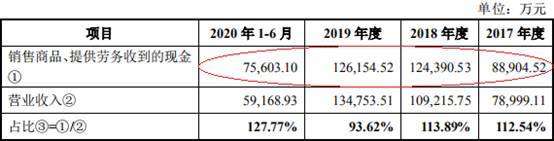 2017年至2020年1-6月,亚康万玮销售商品、提供劳务收到的现金分别为8.89亿元、12.44亿元、12.62亿元、7.56亿元。