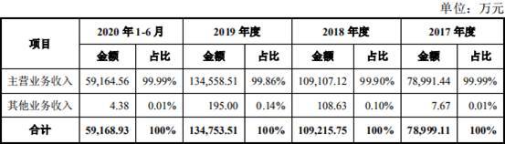 2017年至2020年1-6月,亚康万玮营业收入分别为7.90亿元、10.92亿元、13.48亿元、5.92亿元,主营业务收入分别为7.90亿元、10.91亿元、13.46亿元、5.92亿元。