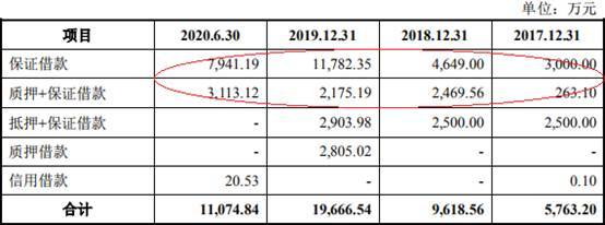 2017年至2020年1-6月,亚康万玮保证借款分别为3000.00万元、4649.00万元、1.18亿元、7941.19万元,质押+保证借款分别为263.10万元、2469.56万元、2175.19万元、3113.12万元。
