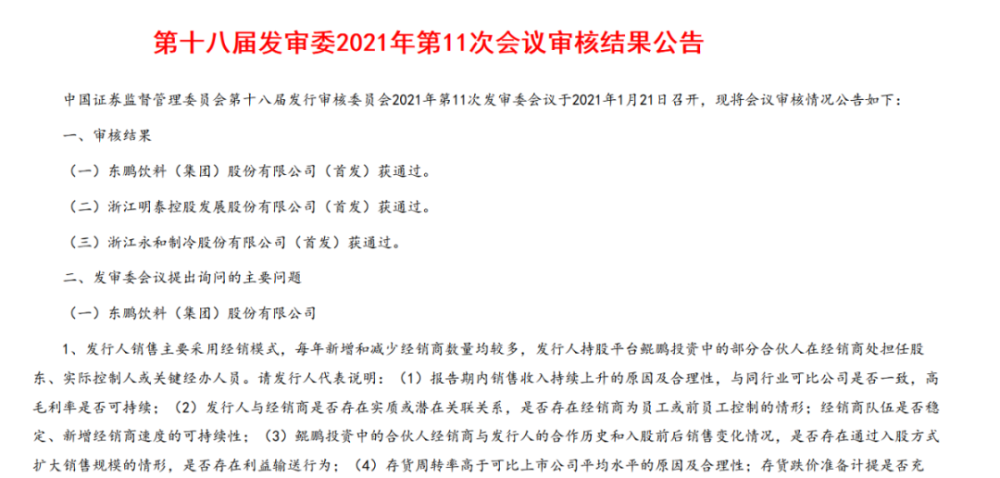因此,证监会第十八届发审委也指出东鹏饮料存在诸多问题,还要求东鹏饮料说明,是否存在经销商配合压货、囤货从而虚增收入的情形。