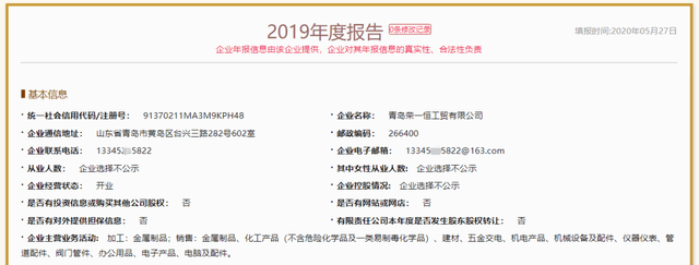 据公开发行说明书显示,青岛荣一恒工贸有限公司(以下简称“荣一恒”)是齐鲁华信2020年上半年的境内第七大客户,销售金额为414.68万元,占比1.33%。国家企业信用信息公示系统显示,荣一恒成立于2018年8月,联系电话为“13345**5822”。
