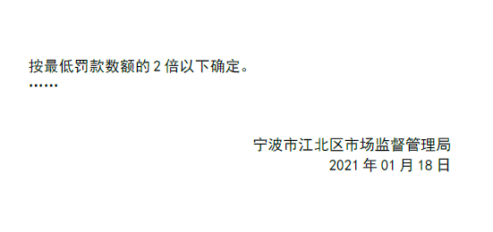 宁波市江北区市场监督管理局行政处罚决定日期为2021年1月18日。