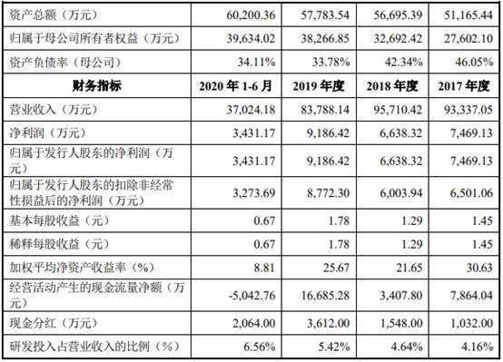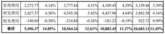 上述同期,公司研发费用分别为2332.77万元、3882.58万元、4437.96万元、4545.36万元和2427.37万元,占营业收入比重分别为4.28%、4.16%、4.64%、5.42%和6.56%。