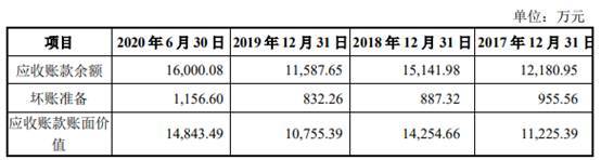 2016年至2020年上半年各期末,安联锐视的应收账款余额分别为9646.38万元、12,180.95万元、15,141.98万元、11,587.65万元和16,000.08万元,应收账款账面价值分别为8771.96万元、11,225.39万元、14,254.66万元、10,755.39万元和14,843.49万元。