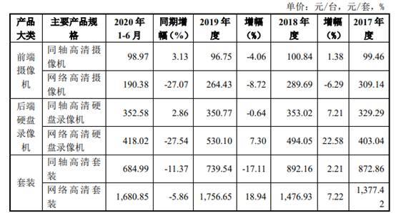套装产品中,同轴高清套装的单价分别为872.86元、892.16元、739.54元和684.99元,网络高清套装1377.42元、1476.93元、1756.65元和1680.85元。