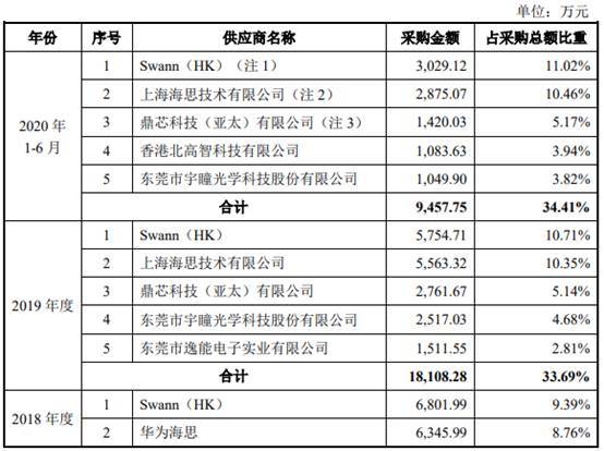 仅在2019年,安联锐视收入的38.02%来自Swann,Swann同时还是安联锐视的第一大供应商。安联锐视2019年在Swann处采购了5754.71万元的原材料,占当期采购额的10.71%。