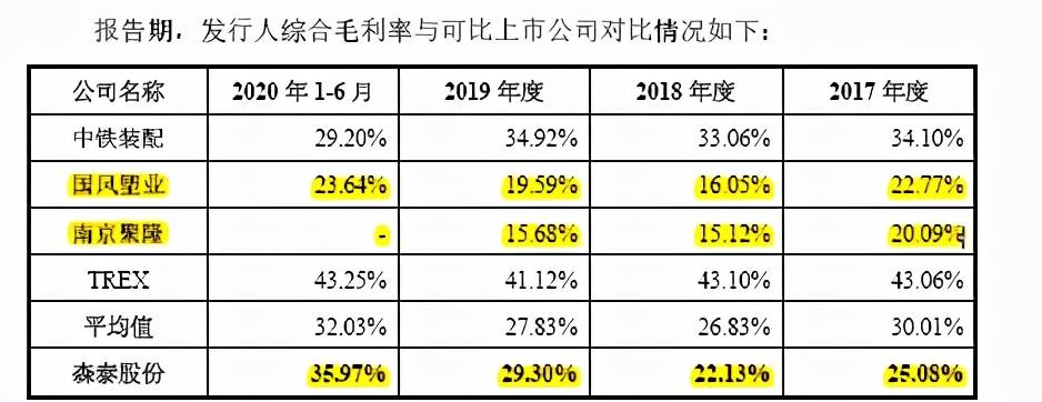 从可比上市公司来看,中铁装配与TREX的毛利率要比其他两家高出一截,这与他们面对的市场有所不同,而国风塑业与南京聚隆的毛利率都在15-25%之间,这与森泰股份波动的毛利率在22%-35%形成对比,森泰股份的毛利率显得更为惊艳。