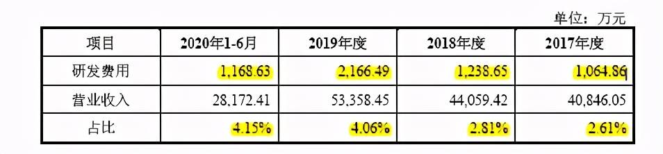 虽然森泰股份称公司注重研发投入,报告期内研发费率逐年提高,研发费用率整体高于同行业上市公司平均水平。但反映到上市的具体财务指标上,还是不符合。报告期内,公司研发费用占营业收入的比例情况如下: