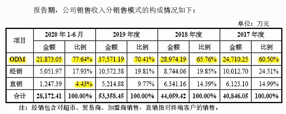 报告期内,森泰股份来自前五大客户的销售收入占营业收入的比例分别为49.89%、50.80%和53.13%和62.28%,报告期,公司ODM模式销售收入占营业收入比例分别为60.50%、65.76%、70.41%和77.64%,呈现逐年上升趋势。公司大部分产能被用于满足ODM品牌商的订单需求,这也使得其自主品牌的认可度较低,直销占比最近一期仅4.43%。若公司因产品和服务质量不符合主要客户要求导致双方合作关系发生重大不利变化,或主要客户未来因经营状况恶化导致对公司的订单需求大幅下滑,均将可能对公司的经营业绩产生不利影响。