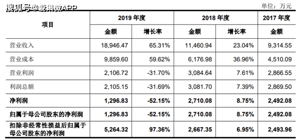 2017年至2019年,和林科技实现营业收入分别为9,314.55万元、11,460.94万元及18,946.47万元,年均复合增长率达到了42.62%,实现净利润分别为2492.08万元、2710.08万元、1296.83万元,实现扣除非经常性损益后净利润规模为2,493.96万元、2,667.35万元及5,264.32万元,年均复合增长率达到了45.29%,业绩增速较高,整体经营情况良好。