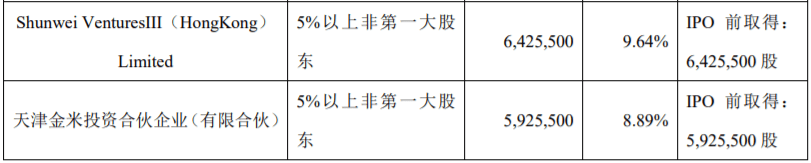 其中,石头时代、丁迪、高榕、启明、毛国华、吴震、万云鹏、张志淳本次减持期间为3个月,减持股份数量合计不超过556.42万股,占总股本的8.35%;天津金米、顺为本次减持期间为6个月,减持股份数量合计不超过183.33万股,占总股本的2.75%。